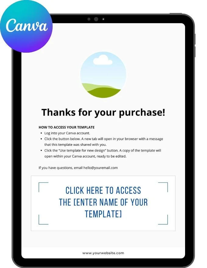 Deliver your template with zero friction. This plug-and-play Canva file gives your customer a clean, branded delivery page with instructions and links to easily access their new template.