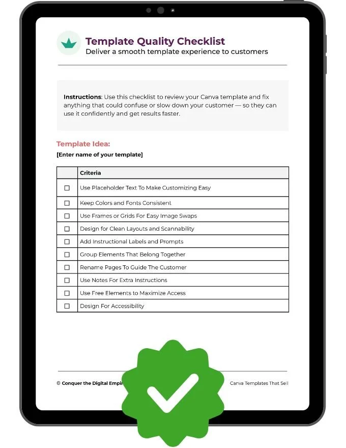 Wondering if your design is “done” or still needs tweaks? This quick checklist walks you through every detail (like layout, formatting, usability) so you can hit publish with confidence knowing your template is well-made and customer-friendly.